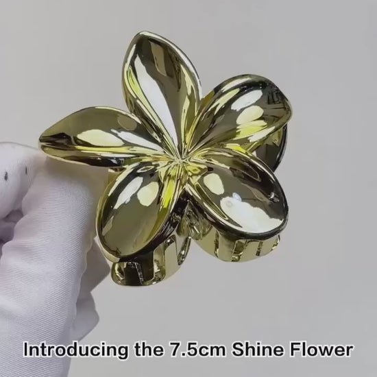 Esta pinza dorada con forma de flor es un accesorio elegante y moderno que resalta cualquier peinado. Fabricada en metal resistente con acabado brillante, aporta un toque sofisticado y romántico al look.